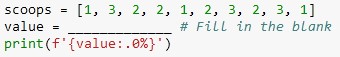 Choose the answer that will print the percentage of customers that ordered 3 scoops of ice cream: